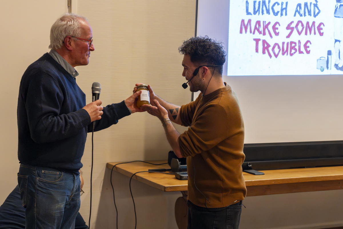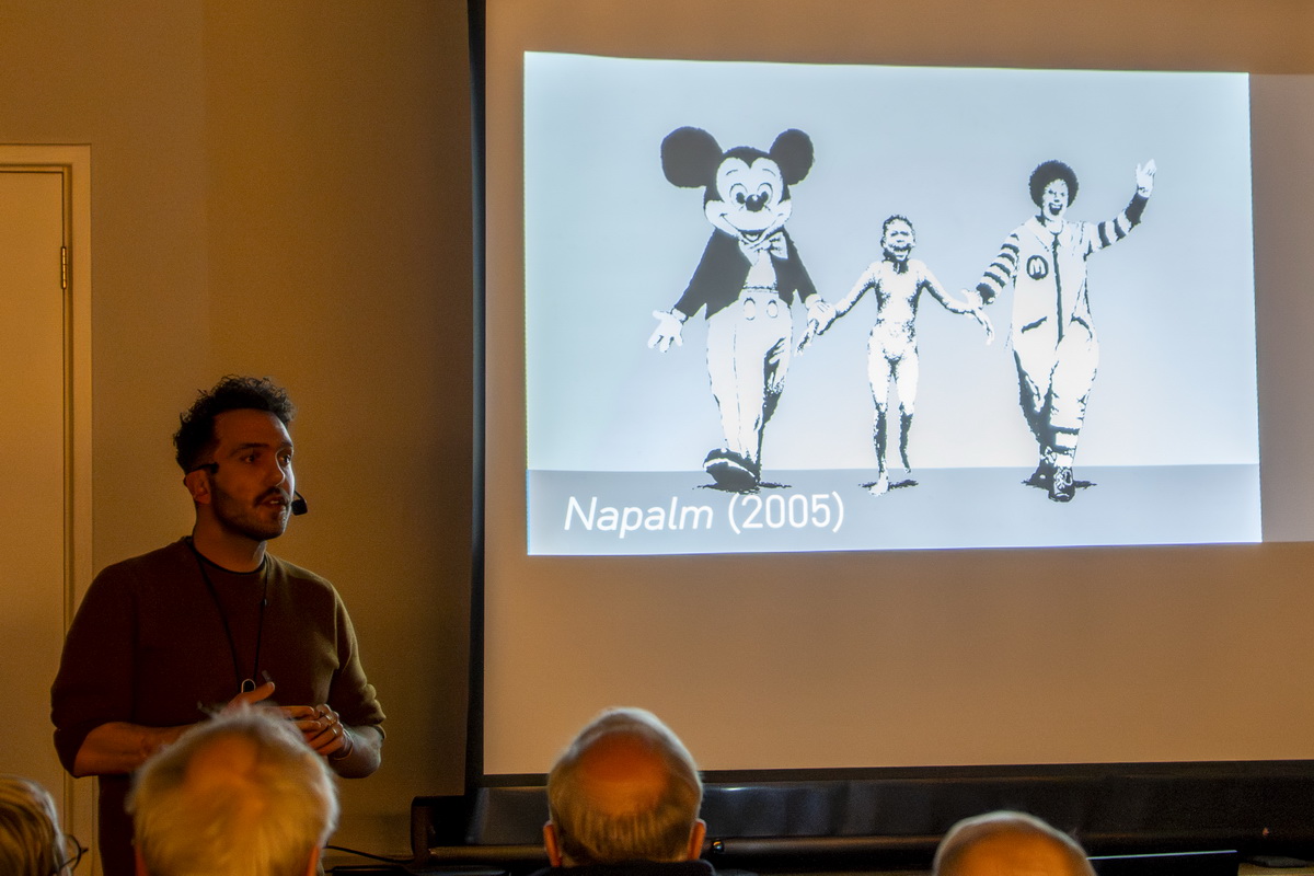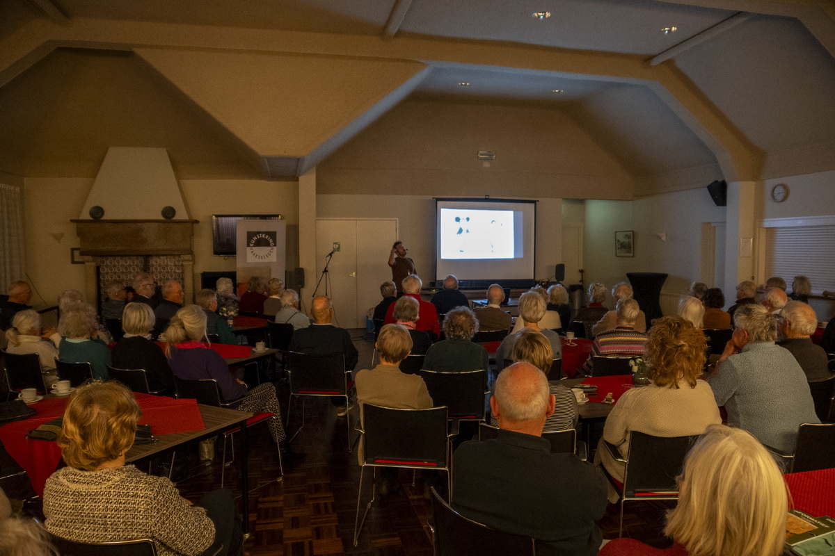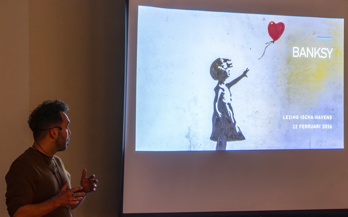 Banksy is het pseudoniem van een Britse graffitikunstenaar, wiens identiteit niet vaststaat. Zijn kunstwerken zijn vaak politiek en humoristisch van aard. In zijn straatkunst combineert Banksy graffiti met een direct kenmerkende sjabloontechniek. Banksy is een enigma. Want is hij een kunstenaar of is zij een kunstenares? Of is Banksy een collectief? Om nu eindelijk eens een antwoord op deze prangende vragen te krijgen, kwamen iets meer dan 90 nieuwsgierige kunstliefhebbers naar De Richtershof. De Kunstkring had Ischa Havens gevraagd om over Banksy te komen vertellen. Ischa was geen onbekende omdat hij eerder in maart 2019 sprak over Anish Kapoor en in april 2023 een lezing gaf over Bill Viola.