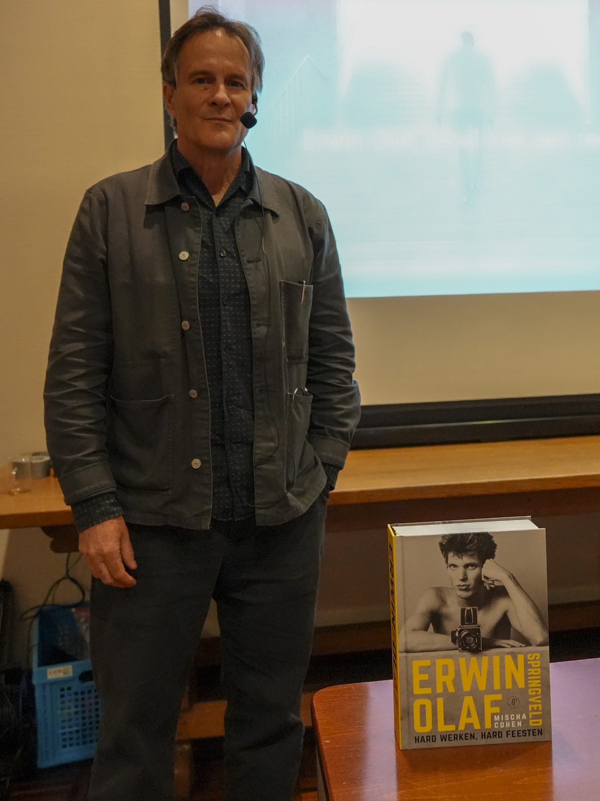Een progressieve longziekte maakte dat Erwin Olaf zijn nalatenschap op orde wilde brengen en meewerkte aan een boek over zijn leven en zijn werk. ‘Ik hoef er niet geweldig uit te komen. Maar ik wil wel dat het klópt.’ Mischa Cohen volgde Erwin Olaf jarenlang en kreeg toegang tot zijn archief en tot zijn leven. Hij sprak met geliefden, vrienden, collega’s, galeriehouders, curatoren, muzen en familie, en was aanwezig bij fotoshoots. Samen selecteerden ze foto’s uit zijn oeuvre en privéleven, waarvan er veel in de lezing getoond werden.