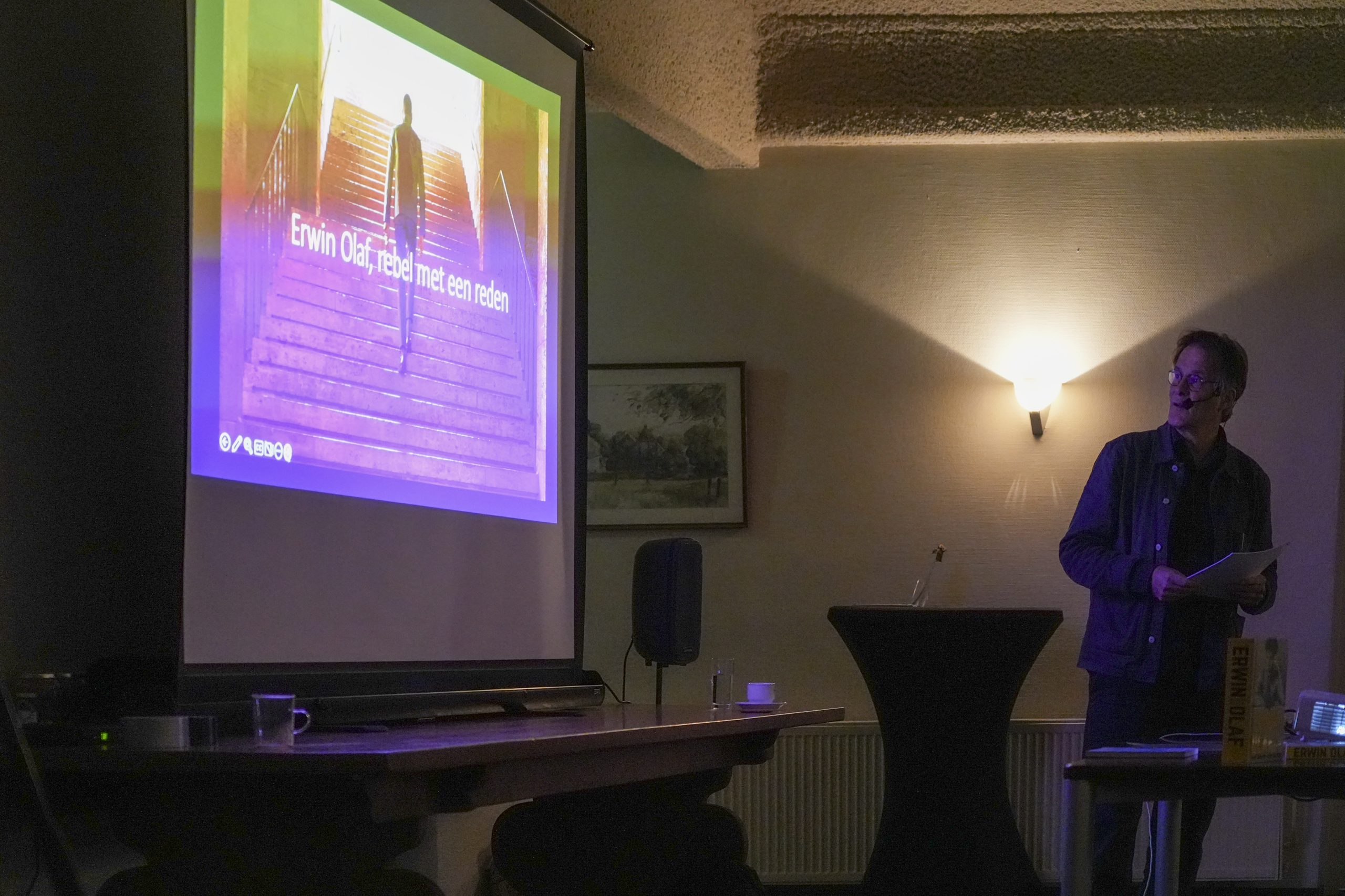 In 2024 verscheen Erwin Olaf Springveld Hard werken, hard feesten van de hand van de schrijver/journalist Mischa Cohen. In het boek schetst hij het uitgebreide levensverhaal van de fotograaf en beschrijft hij de werkbezoeken die hij met hem aflegde naar internationale fotosessies en tentoonstellingen. Naar aanleiding van het verschijnen van dit boek had het bestuur van de Kunstkring Mischa Cohen uitgenodigd voor een lezing over Erwin Olaf. In De Richtershof hadden zich tussen de zestig en zeventig bezoekers verzameld. In zijn lezing vertelde Cohen dat Erwin Olaf in zijn carrière zijn werk voor grote opdrachtgevers combineerde met eigen werk. Daarin ging hij hij taboes en activisme niet uit de weg. Het naakte lichaam en de imperfectie daarvan stonden daarin vaak centraal. De fotograaf streefde daarentegen wel naar perfectie in de enscenering van zijn werken.