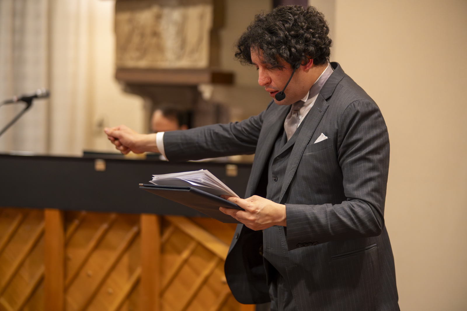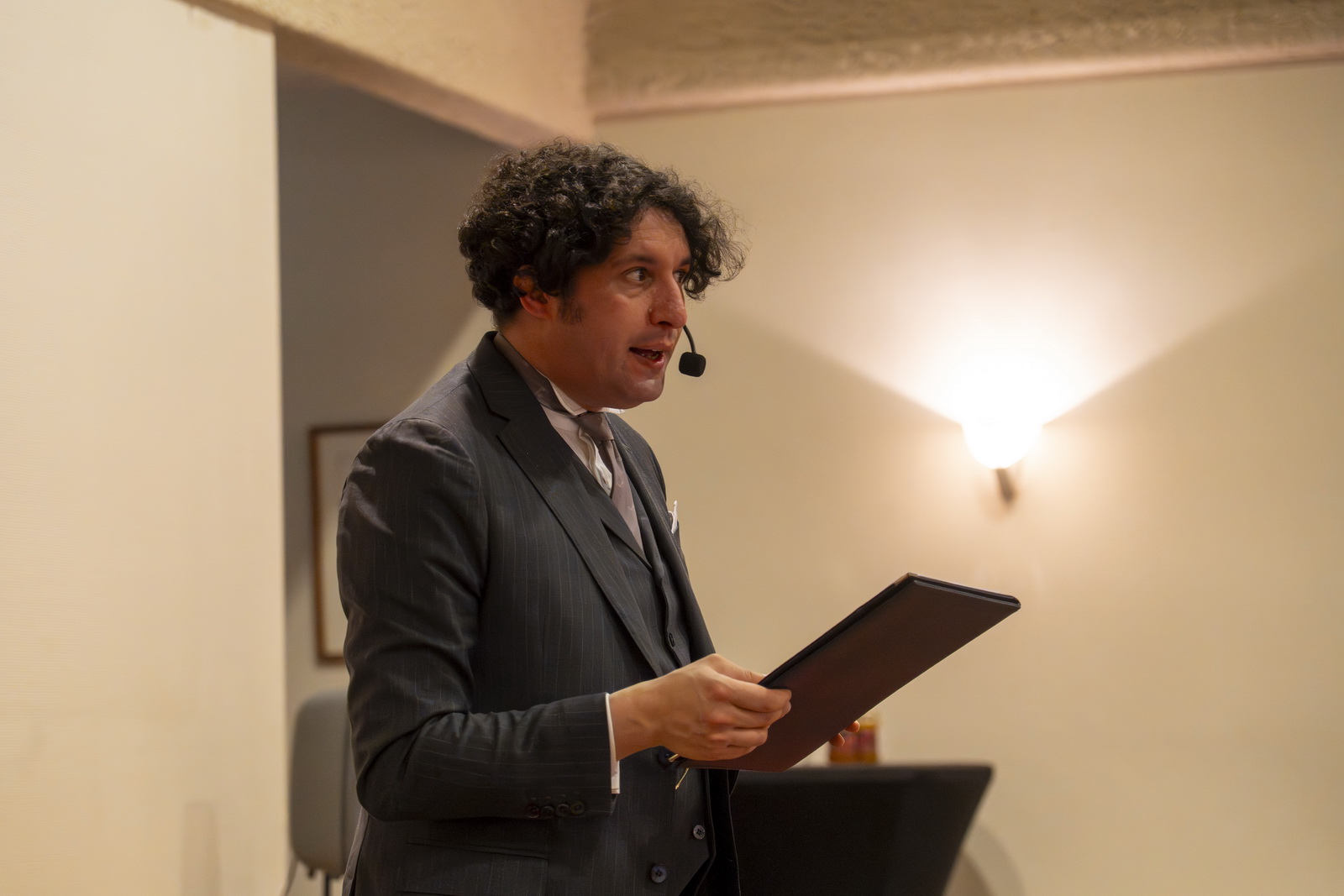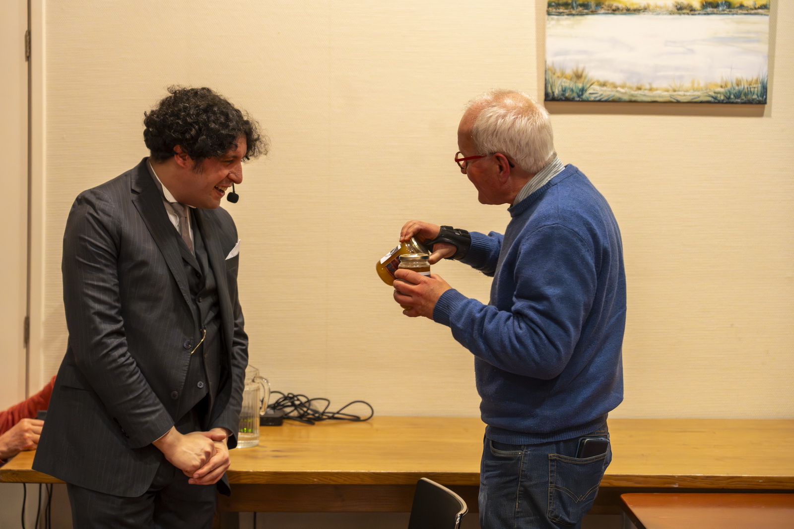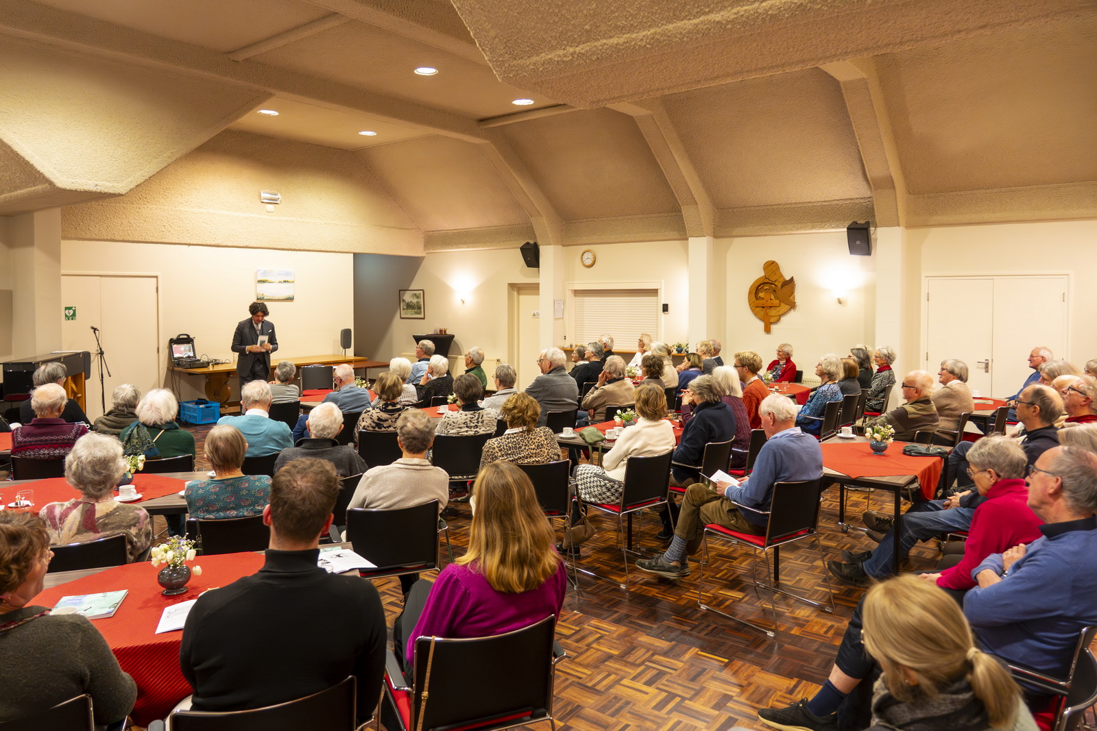 Hoeveel mensen waren er? Een dikke 60 of een kleine zeventig? Het doet er ook helemaal niet toe. Het was in elk geval een zeer goede opkomst en een goed gevulde zaal. Men was gekomen voor een avond ‘Van en over Louis Couperus’. De fantastische voordrachtskunstenaar Simon Mulder bracht bekend en minder bekend werk van Louis Couperus, zoals fragmenten uit de roman ´De berg van licht´, en de vertederende korte verhalen ‘Het spoorwegongeluk’ en ‘Het verbeelde leven’. Hij deed dat met zoveel flair dat De Richtershof moeiteloos voor je geestesoog veranderde van treincoupé naar Scheveningse boulevard, en van salon naar Operatheater. Tussen de fragmenten door vertelde Simon enkele anekdotes over de grote schrijver. Pianist Daan van de Velde speelde met veel gevoel bijbehorende muziek van o.a. Rubinstein, Gounod en Wagner. Daan van de Velde en Simon Mulder besloten de voorstelling met een declamatorium (een door muziek begeleide voordracht) op Couperus’ beroemde korte thriller ‘De binocle’. Het werd door de enorme verbeeldingskracht van zowel de tekst en door de geweldige performance het absolute hoogtepunt van een buitengewoon geslaagde Kunstkringavond