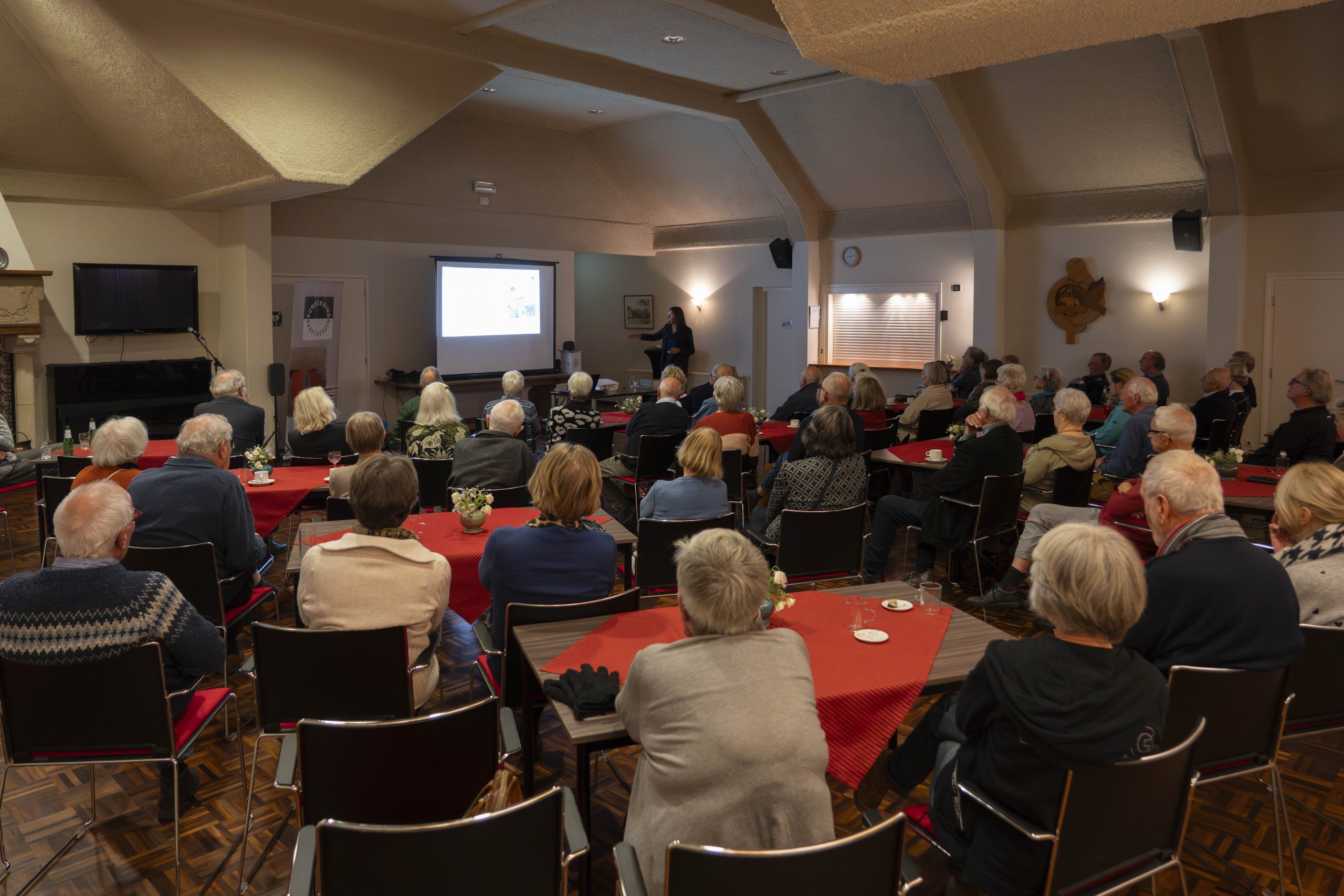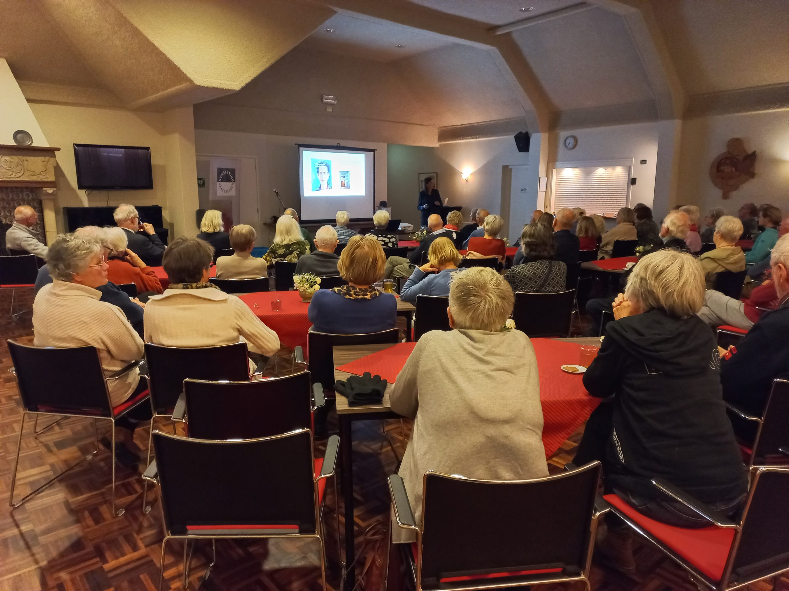 Frederieke Jeletich slaagde er deze lezing in om het leven en de artistieke ontwikkeling van de kunstenaar te reconstrueren. En dat ondanks het feit dat er weinig bronnenmateriaal was overgebleven, Net als in haar boek doorliep Frederieke ook in deze lezing de verschillende fasen van zijn veel te korte leven aan de hand van de plaatsen waar Max zich bevond. De ruim 50 aanwezigen reisden mee vanaf Max’ vroege jeugd in Winterswijk tot de gruwelijke laatste maanden. We kregen een blik op zijn wereld door de vele illustraties van zijn werken. De lezing gaf een helder inzicht in zijn kunstenaarschap dat door de verschrikkingen van de Tweede Wereldoorlog in de kiem werd gesmoord.