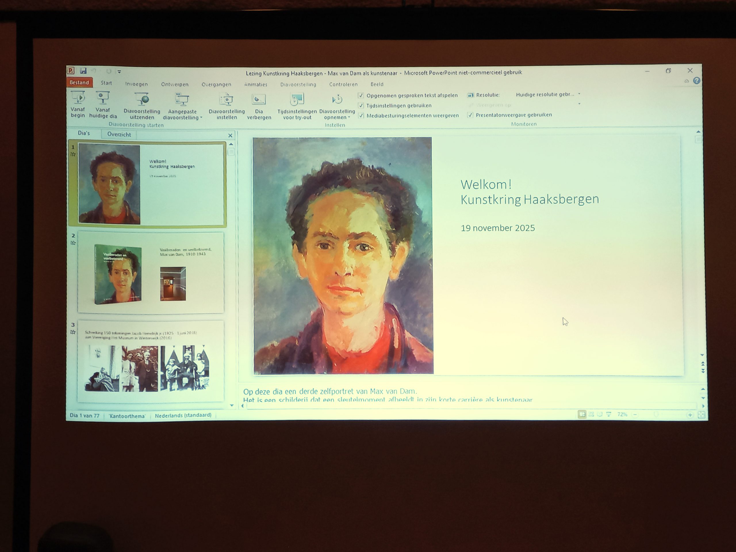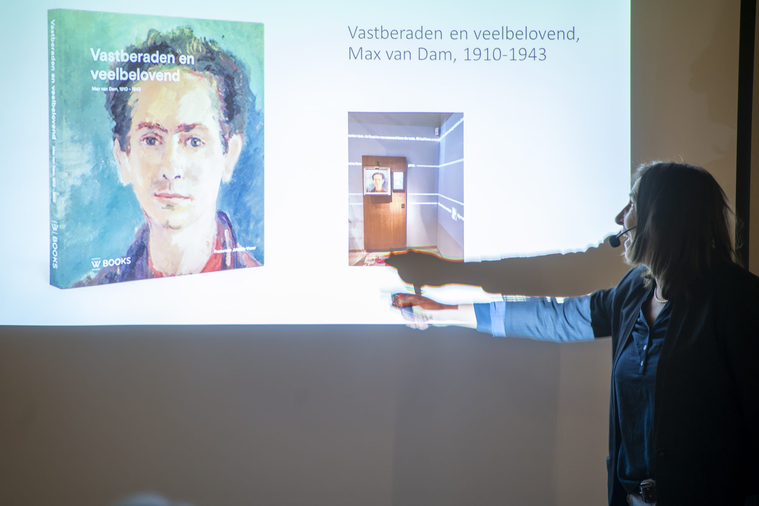 Ruim tachtig jaar na de moord op Max van Dam in Sobibor heeft kunsthistorica Frederieke Jeletich-Visser een podium gecreëerd voor de kunstenaar en zijn werk. Dit deed ze door onderzoek te doen naar overgeleverde bronnen en nieuw ontdekte informatie en door het inventariseren van het verspreide oeuvre. Zo ontstond het boek Vastberaden en veelbelovend – Max van Dam, 1910-1943. Ook met haar lezingen, zoals ook deze avond voor de Kunstkring Haaksbergen, houdt zij de herinnering aan Max van Dam levend.