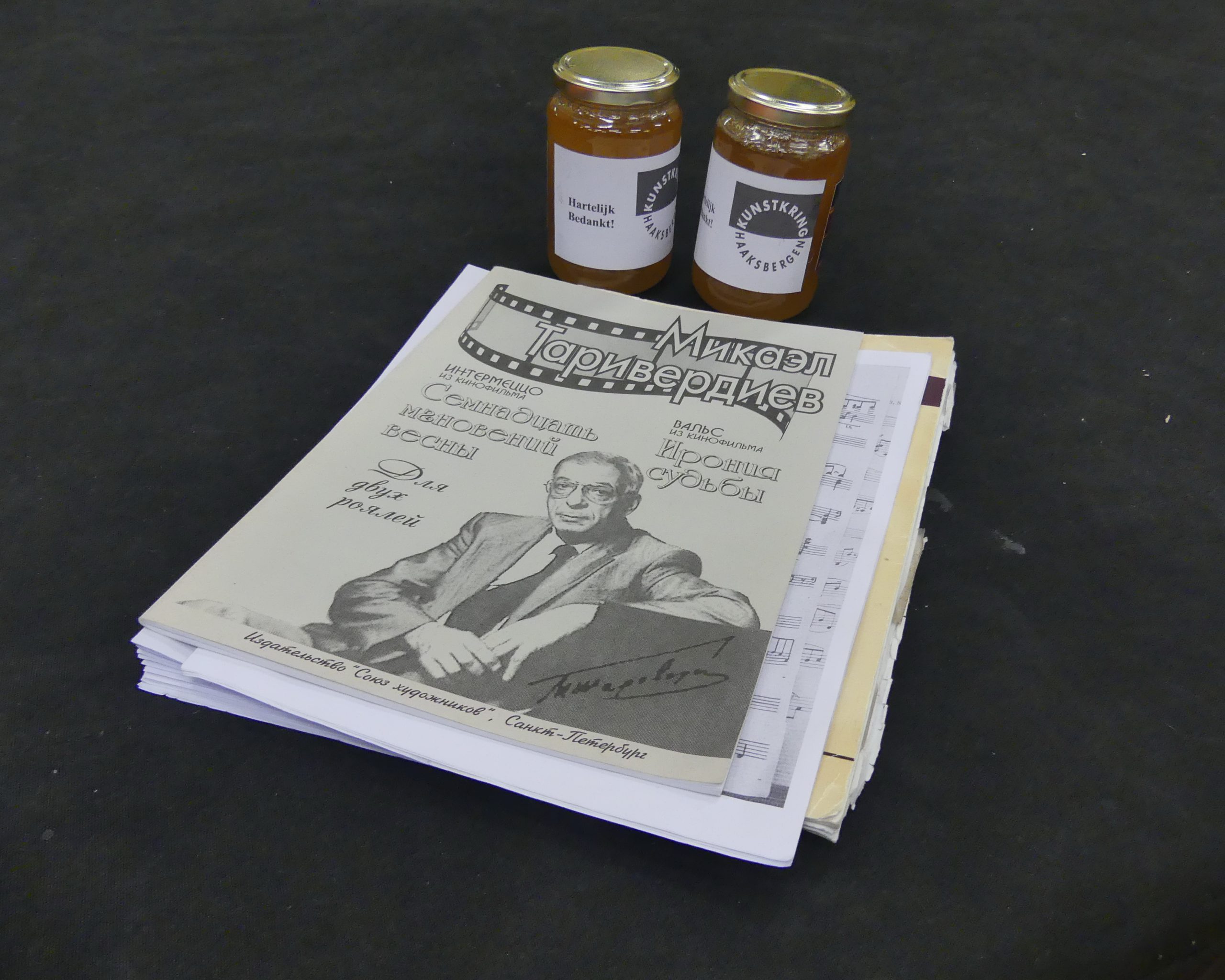 In het tweede deel van het concert genoten de aanwezigen nog met volle teugen van de gloedvolle uitvoeringen van de Petite Suite van Debussy, ‘On the Road’ van de Sovjet (film-)componist Mikael Tariverdiev direct gevolgd door een eigen bewerking van Gershwins ‘Summertime’. Tot (bijna) slot klonk van Sergey Rachmaninov diens ‘Italian Polka’. Tot bijna slot, want nadat het staande applaus voor hun met zichtbaar veel spelplezier uitgevoerde concert. En na de ontvangst van de potjes ‘Kunstkring-honing’ sloten Sofia en Andrey de middag af met een toegift. En dat was een deel uit ‘Devils Rag’, een oorspronkelijk voor saxofoon en piano geschreven compositie van Christian Lauba. Met instemming van deze componist maakten Sofia en Andrey hier een spetterende versie voor piano-vierhandig van.